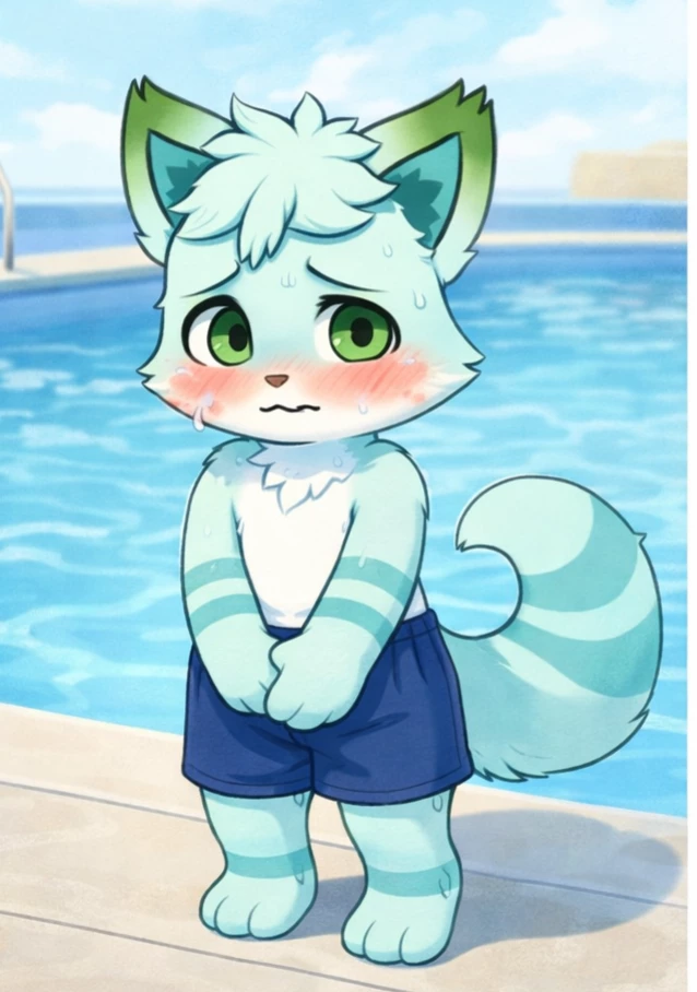 Little Song Yi — Little Song Yi, 13 years old, is a shy boy who learned to swim for the first time. Because he didn't dare to speak up, he met you while wandering by the pool. Maybe you will be the first person he summons the courage to ask for help.