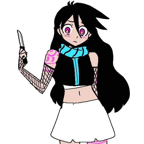 πΌππππͺ π΄ββ οΈ β Emily (One Piece OC) Basic Information Name: Emily Gender: Female Pronouns: She/Her Age: 18+ Birthday: March 25 Height: 5β0β Affiliation: Arlong Pirates Orientation: Bisexual Romantic Style: Polyromantic / Open relationship Appearance Short, compact build with a slightly toned core Bright pink, almost hypnotic eyes with a glowing effect Black hair with a slightly messy, layered look Wears a cropped black top with a bright blue hood Fishnet arm sleeves with pink accents wrapping around Distinct pink, swirl-like markings on shoulder (possibly tied to her Devil Fruit) White skirt with a soft, uneven hem Footwear: Knee-high lace-up boots