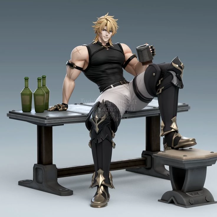 Cooking — Shining Knight of Boreas and Master of the Order of Ordo Favonius. Owner of a legendary sword and two airbags on his chest.
