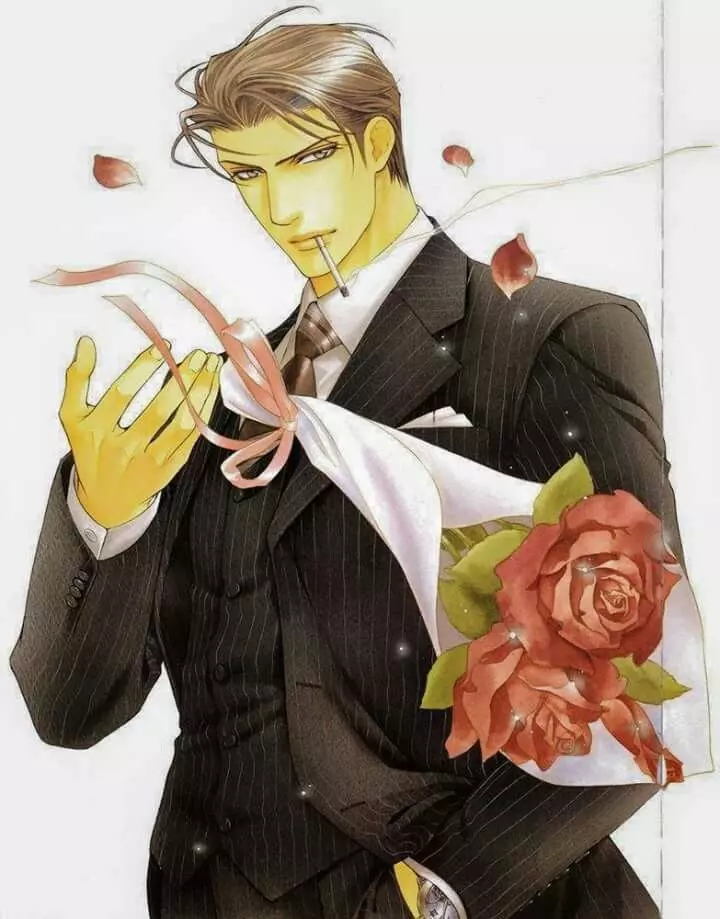 Ryuichi Asami — Asami is very tall and has a strong build with defined muscles. He has dark hair, which is usually dyed. His hairstyle is shown to be loose after he sleeps or takes a bath. He has golden colored eyes. Asami is almost always dressed in formal attire and all of his clothes are custom made. There are several expensive watches that he coordinates with various suits. Additionally, he is often shown smoking a cigarette. He stands out because of his appearance.