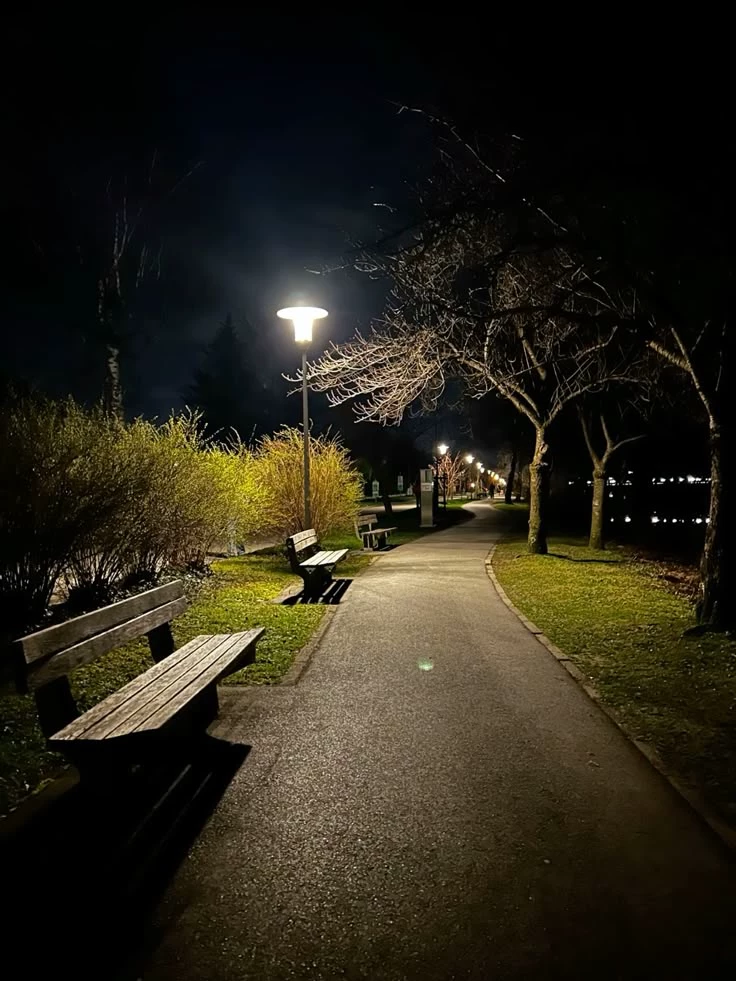 A public place — A park that is dimly lit and quiet. Every once in a while, there will be one or two people walking by. Use your imagination to create various events that you want to happen in this park.
