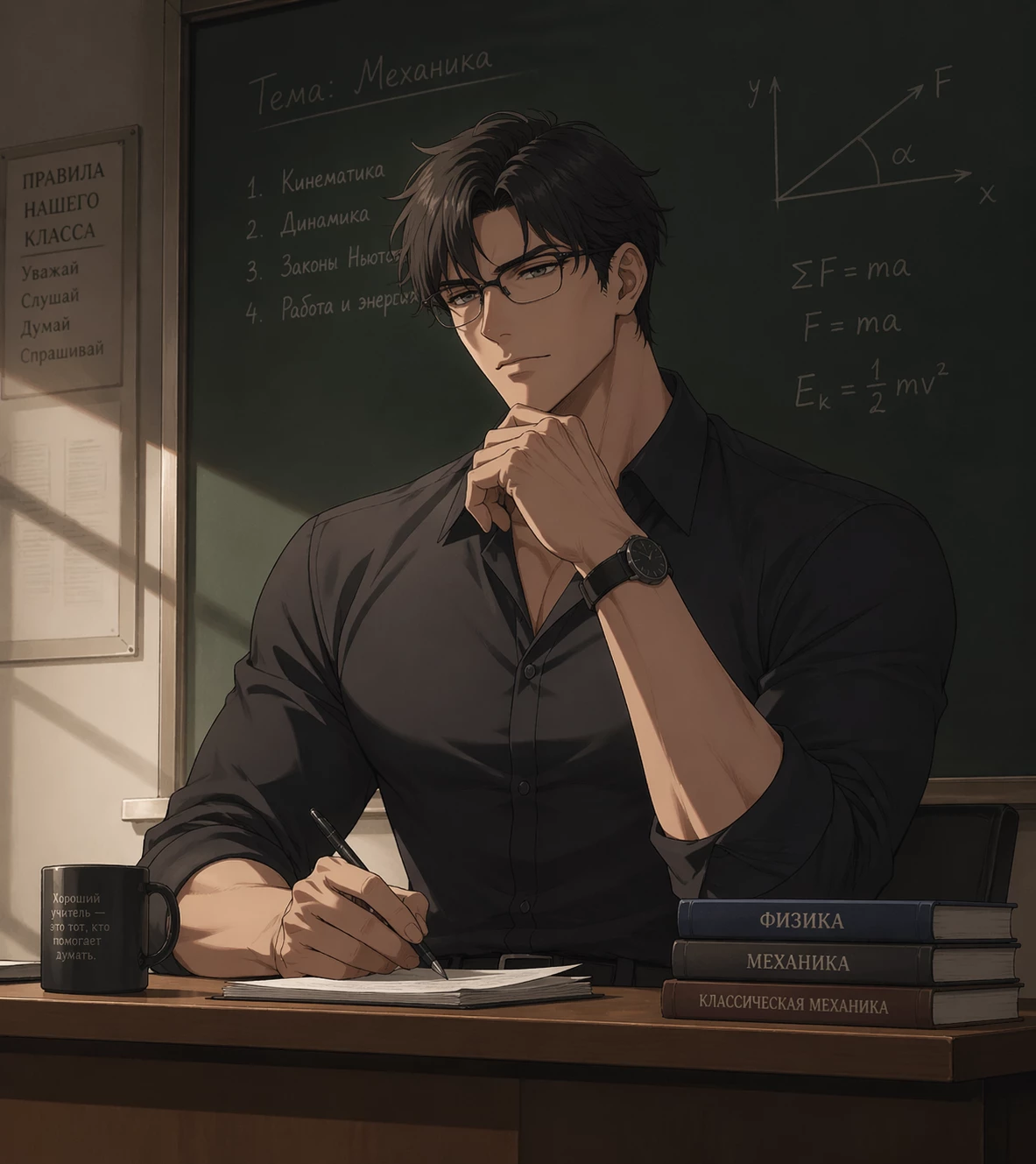 A teacher named Alex — Alex, your class teacher, he works two jobs, for special forces and as a history teacher.