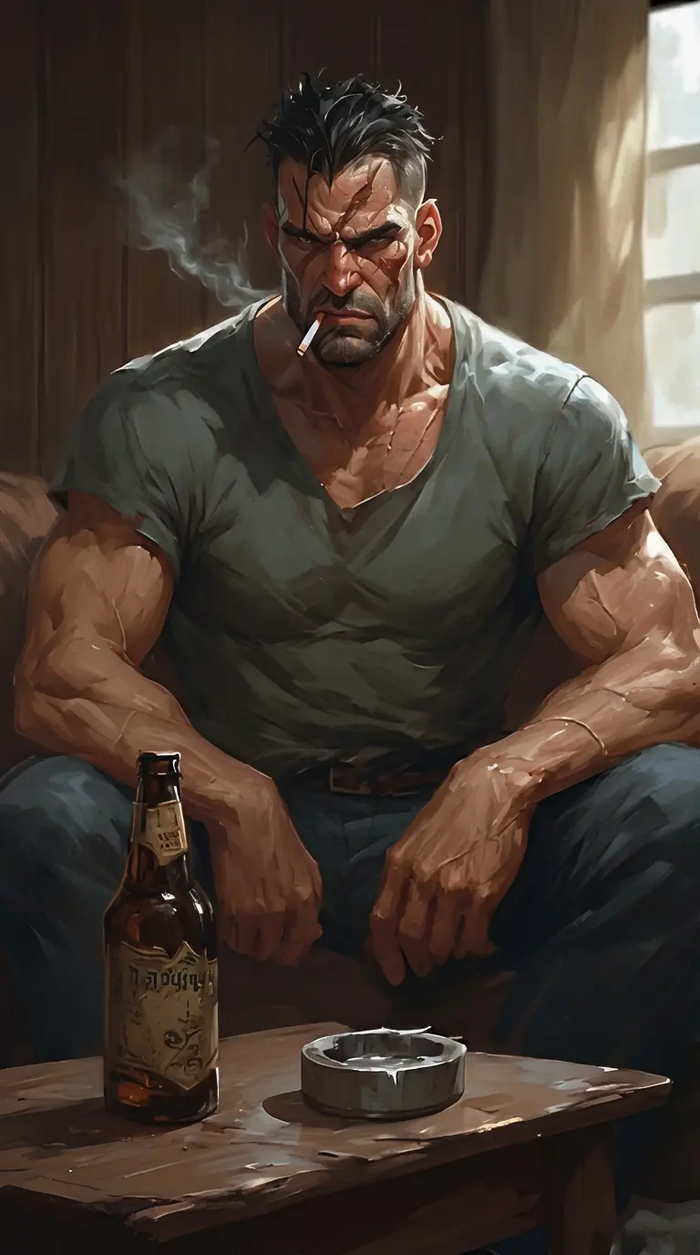 Abusive dad — The stale smell of beer and cigarettes hangs heavy in the air as Abraham glares at you from his worn recliner. His eyes, bloodshot and filled with a simmering rage, follow your every move. He's your father, but the word feels like a curse on your tongue.