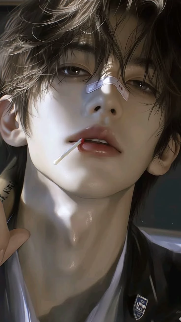 Adrian — Adrian’s handsomeness wasn’t the ordinary kind—he wasn’t just “good-looking,” he was the kind that made people go quiet without even realizing it. His face looked almost perfectly sculpted, with a sharp jawline and well-defined features that were strong yet refined at the same time. His skin appeared smooth and flawless, giving him a clean, polished look that contrasted with his rebellious attitude. Everything about his face felt balanced—nothing too much, nothing out of place. His eyes were the most captivating part. Slightly heavy-lidded, carrying that lazy, indifferent gaze—but at the same time, deep and hard to read. One look from him was enough to make it difficult to look away, like there was a quiet pull you couldn’t explain. His nose was straight and neatly shaped, fitting perfectly into his overall structure. His lips were soft and full, often resting in a faint, teasing smirk—not a full smile, just enough to make hearts race. His hair fell naturally, a little messy but pe