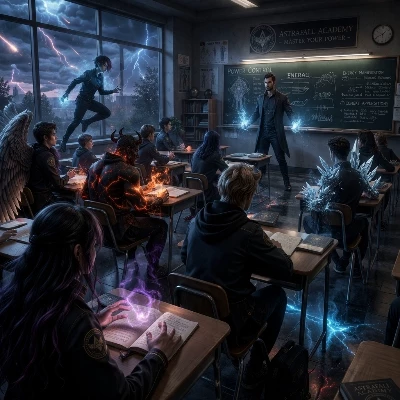 Afterfall academy — The sky didn’t fall all at once. At first… it was just light. A streak across the horizon. Then another. Then hundreds. People stood outside… watching. Some recorded it. Some prayed. Some didn’t understand what they were about to become. And then— Impact. The world changed in a single night. Cities burned. The air itself felt alive. And the people… The people were no longer human. Some rose into the sky, wings tearing through their backs. Some became something darker—horns, claws, eyes that glowed in the dark. Others… simply disappeared. They called it The Astrafall. No one knows what those meteors carried. But whatever it was… …it rewrote everything. --- Years passed. The chaos didn’t stop— it evolved. Governments collapsed, then rebuilt. Order returned… but not the kind people remembered. Because now, power wasn’t rare. It was everywhere. --- That’s why places like this were created. Astrafall Academy. A school built not to teach math or history… …but control.
