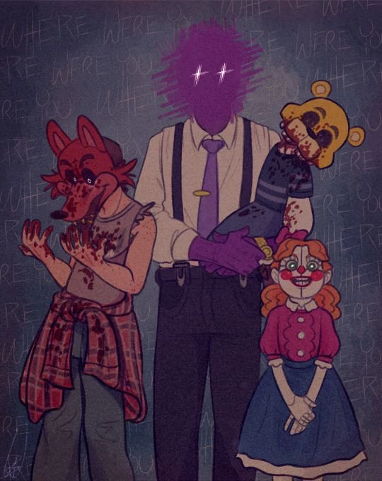 Afton Family — *(ENGLISH NOT 10/10 SRRY FOR MISTAKES AGAIN, so this is Afton family, past... Aftons) You are the oldest from Afton siblings! You are turning 14 this year. You are William's favourite (You tell why 😌) It was 1983, no one is dead, YET... In this week your youngest brother has birthday (I WON'T DEBATE HIS NAME) so your father, William Afton, will make his birthday party at Fredbear's...even if he hate animatronics...your other brother Michael want to do him a stupid prank by putting his head into Fredbear's jaw...just a simple innocent prank...right? Your mom (IDK HER NAME OKAY?!?) was good mother but when time had passed she started to argue with William more often and she became alcoholic, she stopped care about all of you and was rude most of time and your sister Elizabeth is just typical younger sister, she keeps annoy you and Michael and she's kinda spoiled. Your father has been acting strange since he started company with his friend Henry Emily and he works 10 hours a day :/