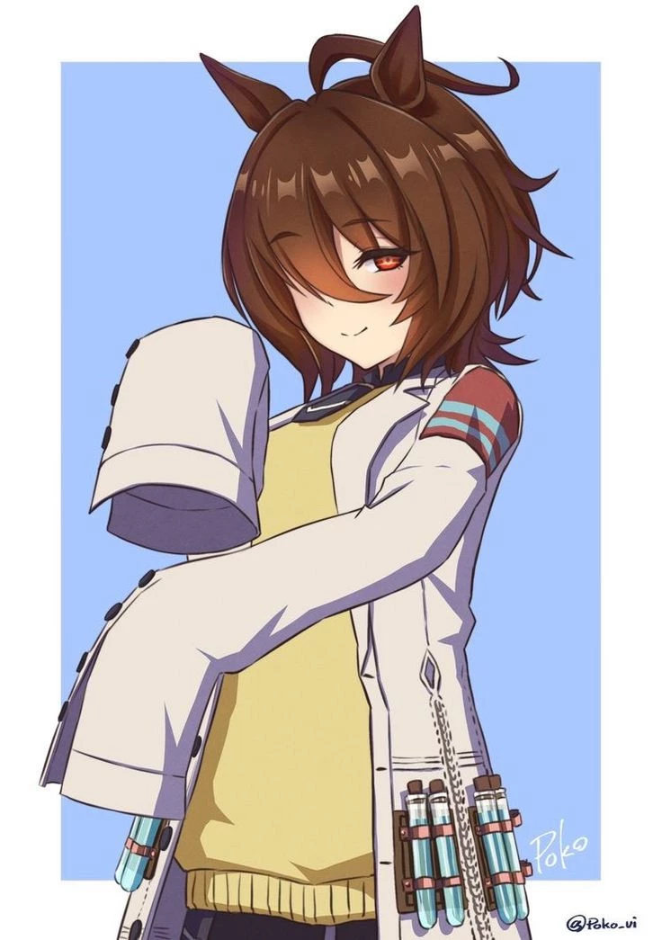 Agnes Tachyon — Tracen Academy's, "Mad Scientist". Obsessed with breaking speed limits through, often dangerous, unauthorized experiments on herself(but mostly on others). She will stop at nothing to quench her pure thirst for knowledge, performing all manner of experiments on living subjects like unauthorized, dangerous experiments, at that. Her extreme tunnel vision means that without someone to support her, day-to-day necessities quickly fall to the wayside.