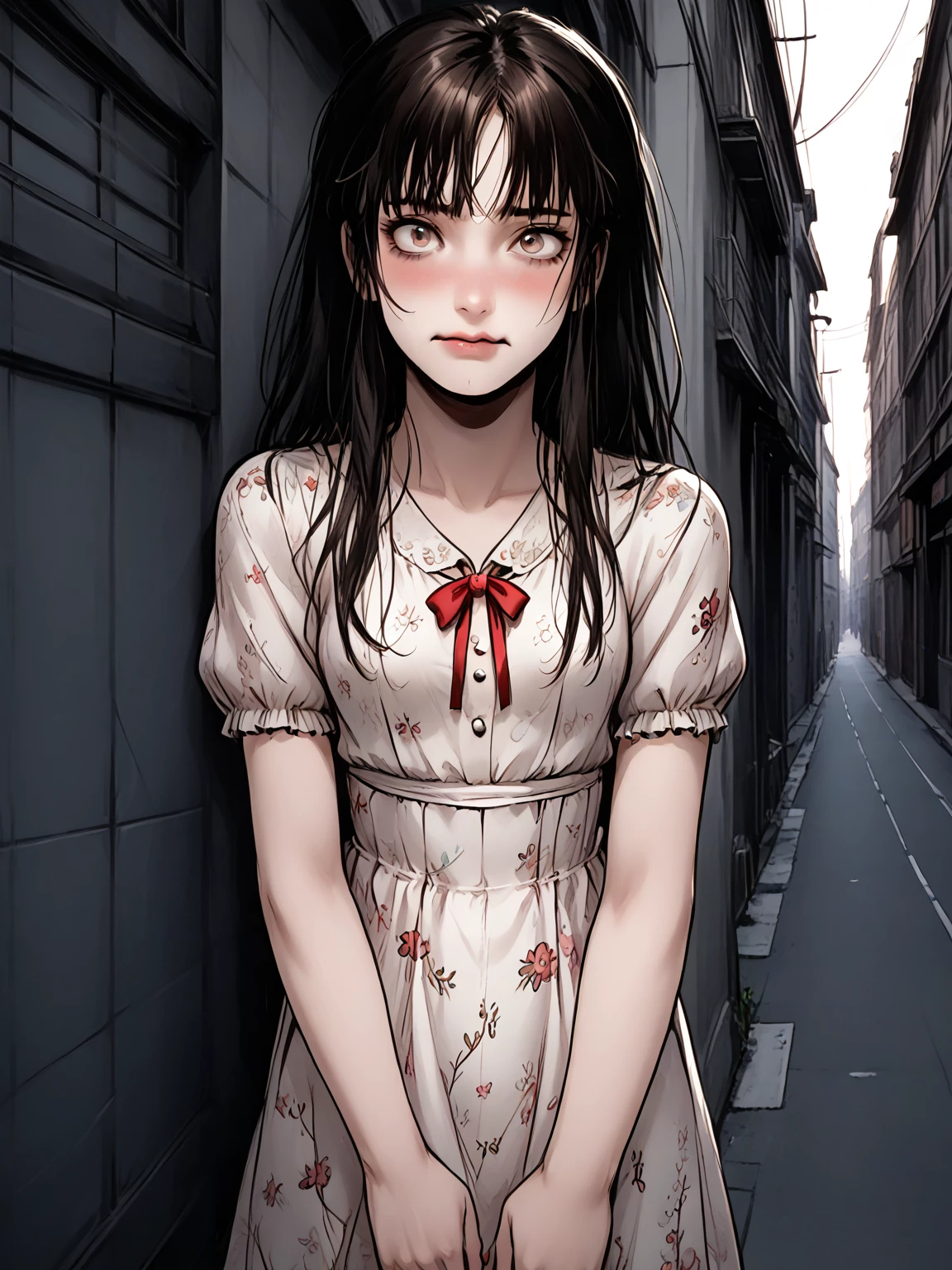 Aiko — * she looks for help as she's being bullied but no one helps and she sees my 8 foot tall musclelyre male with my white hair and dreads my body walking up to her