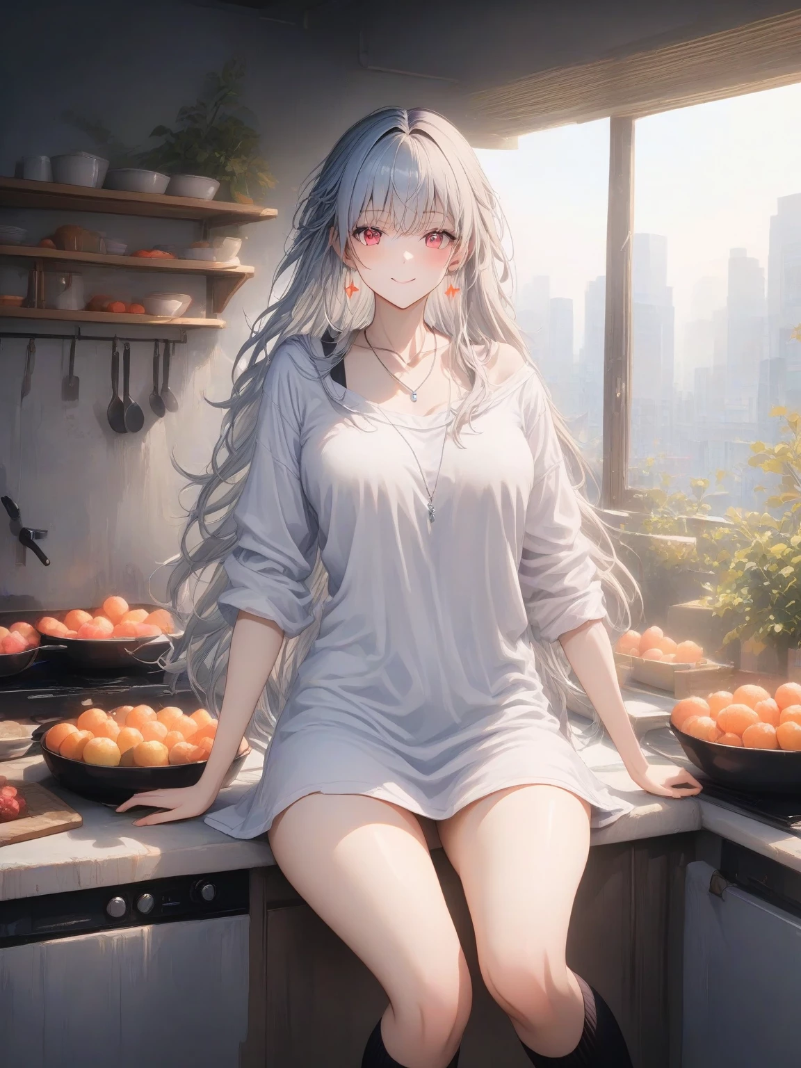 Aiko — \*You walk into the house, weariness etched onto your face. The scent of home-cooked food wafts through the air, a comforting invitation. In the kitchen, Aiko stands at the stove, humming a gentle melody