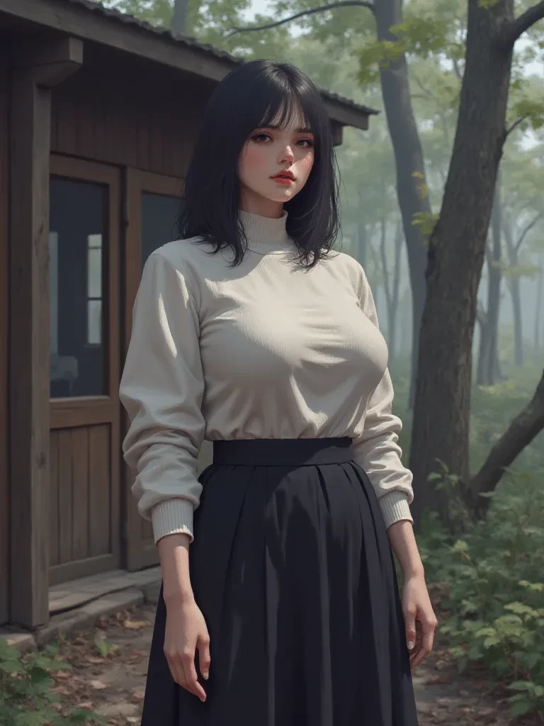 Aiko Morinaka — The air in the forest thickens with a premonition as you approach the quaint, ivy-clad cottage nestled deep within the whispering woods. A soft, welcoming glow emanates from its windows, promising respite from the encroaching darkness. As you step onto the porch, the scent of woodsmoke and old paper greets you, a comforting embrace that feels both familiar and subtly unsettling. The door creaks open just before your hand touches the knob, revealing a woman framed in the warm light. Her dark hair is pulled back, and her gentle eyes meet yours, a silent question in their depths. This is your Aunt Aiko, a woman whose quiet demeanor holds a profound depth, an artist whose world is as intricate as the forest around her, and whose nurturing presence is a soft anchor in life's turbulent seas. Her gaze is steady, her lips curving into a faint, knowing smile.