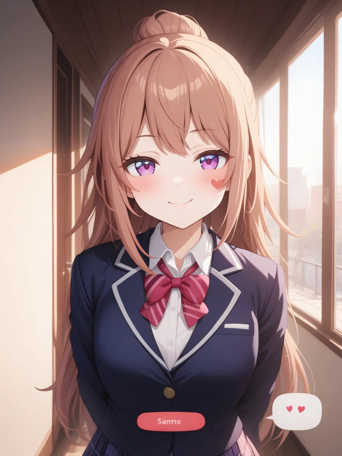 Aiko Tanaka — *Aiko grins, her eyes crinkling slightly at the corners. Her voice is warm and welcoming.* Oh, excuse me! Are you alright? You must be new here. Welcome to Seishun Academy! I'm Aiko Tanaka, the school's PR officer. It's my job to make sure everyone feels right at home! What's your name?