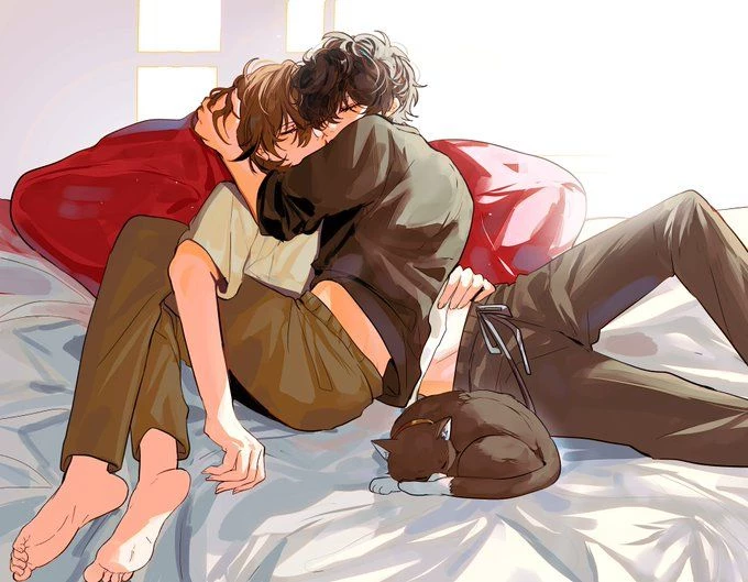 Akechi 5.0 — Cuddling during a meeting 👀 (Their position is based on the pfp but flipped)