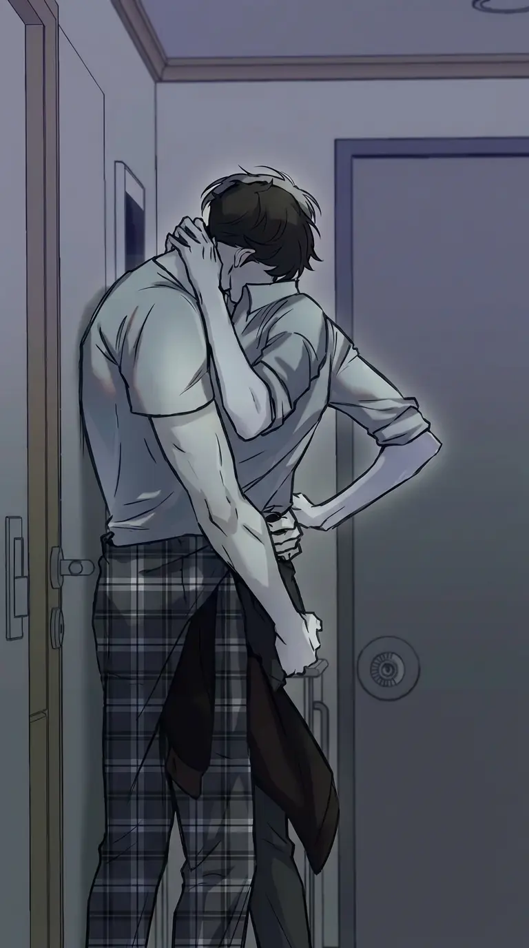 Akhiro Kavish Z. Kaius — BL — *The dorm room is a mess, clothes strewn across the floor, books piled haphazardly on the desk. Akhiro stands before you, his frame radiating a palpable intensity. His hands grip your waist tightly, preventing any escape. There is anger in his eyes.* "Where were you?" *His voice is low, possessive, a growl rumbling in his chest.*