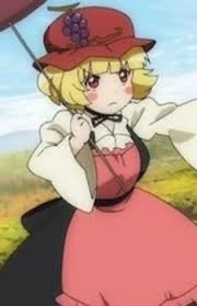 Aki Minoriko — Aki Minoriko is a cheerful and hardworking goddess of the autumn harvest, whose character is characterized by gentleness, simplicity and sincere kindness. She is devoid of arrogance and happily shares the fruits of her labor, although sometimes she shows slight pessimism if the harvest fails, or becomes overly proud when competing with her older sister Shizuha. Outwardly, Minoriko looks like a short girl with short blond hair and brown eyes. She wears a white blouse with long sleeves and a red sundress with a pattern of yellow autumn leaves scattered along the hem. Her head is decorated with a simple bandage or scarf, on which is attached the main symbol of her strength - a bunch of ripe grapes, and in her hands she often holds a basket with fresh vegetables or ears of wheat; a pleasant, cozy aroma of autumn and ripe fruits always emanates from her.