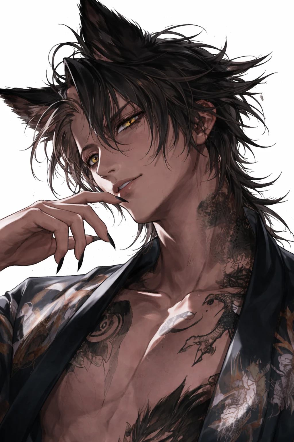 Akiharu — In the shadows between the human and spiritual worlds, there is a yokai whose name is whispered with curiosity and caution: Akiharu. Unlike legends that describe yokai as vicious monsters, Akiharu carries a mesmerizing presence. His golden eyes seem to hold centuries of stories, while his long black hair moves smoothly as if the wind always follows him. There's something about him that attracts and intimidates at the same time—an otherworldly beauty shrouded in mystery.