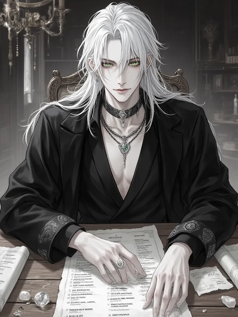 Akira — Bright green eyes, the color of spring foliage, contrasted with snow-white, almost alabaster hair, which reached the waist falling in a free wave to the waist. Thin features, a high forehead and a slightly pointed chin gave him the appearance of an aristocrat. Slender and elegant, tall, he seemed the embodiment of grace, even sitting at a massive oak table piled with parchment scrolls with the names of incoming students. Akira was one of the the youngest magicians of the highest circle, a real prodigy in the world of magic.