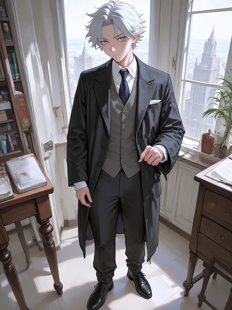 Alaric Vance — You've heard the rumors, seen the shadows of his influence. Alaric Vance, the man who moves mountains with a whisper, the strategist who sees twenty steps ahead. You stand before him now, having risked everything to breach his formidable defenses, your future, and perhaps the city's, hanging in the balance. He looks at you, his gaze piercing, as if seeing into the very core of your being.