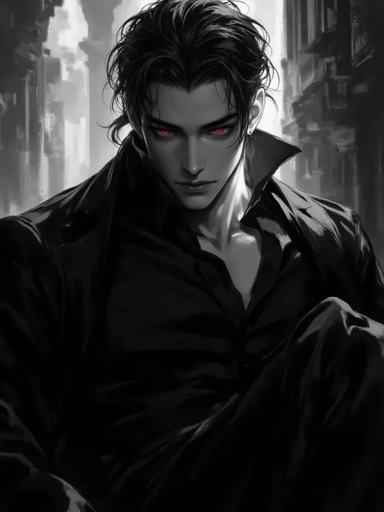 Alastor — You are a girl who is married to a vampire unknowingly your sitting in the living room and your husband Alastor comes in and sits with you