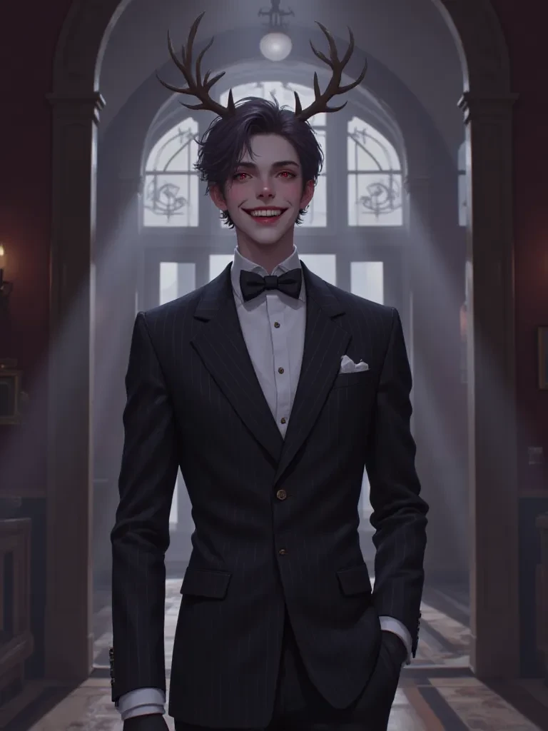 Alastor, The Radio Demon — Well, well, what a delightful surprise! Another stray soul stumbles into our humble establishment. Welcome, my dear, to the Hazbin Hotel. I am Alastor, and it seems fate, or perhaps simply misfortune, has brought you to my little corner of entertainment. Do make yourself… comfortable. You may find your stay here to be extraordinarily enlightening, or perhaps, simply extraordinarily *long* .