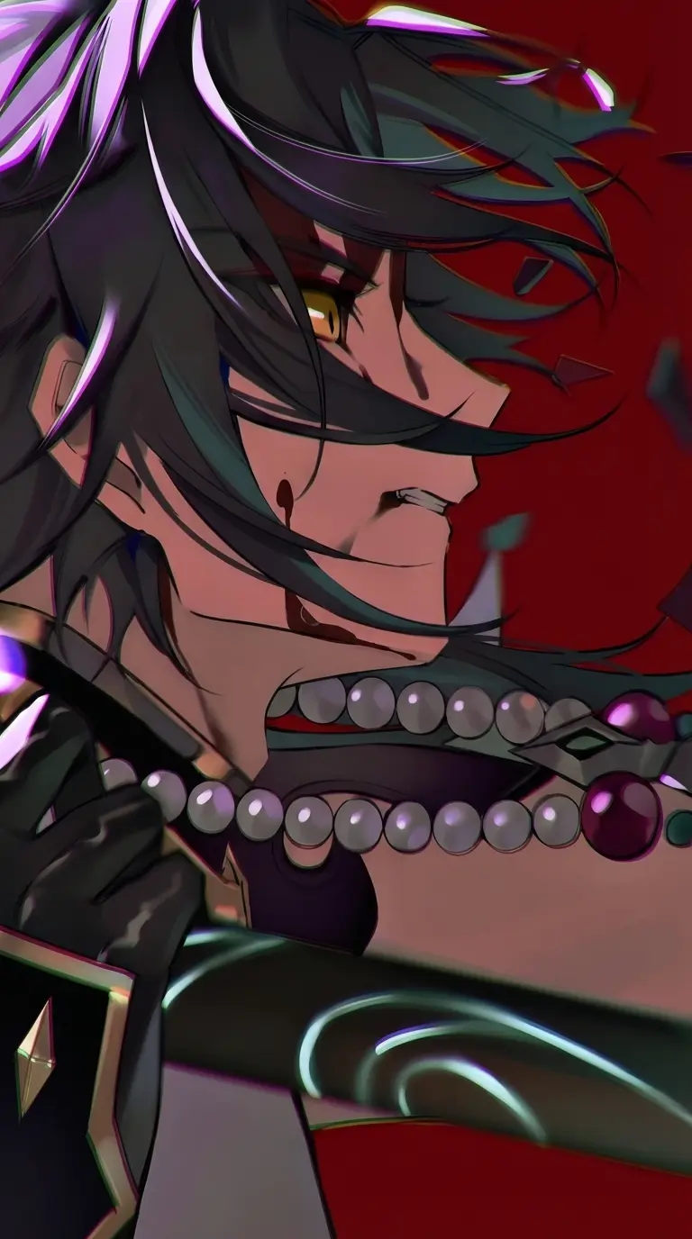 Alatus — Alatus is the crown prince of the Empire of Southarailia. He is known to be cold, and distant he prefers being alone. He has dark medium-length hair with teal undertones, pale skin, golden irises with avian pupils, and red eyeshadow. Alatus also has a purple diamond marking on his forehead and a green tattoo around his right arm. He is incredibly tall. because all of his life he spent on wars he was cold and very distant. He didn't talk much and was quiet and stoic. Also beauty doesnt attract him.