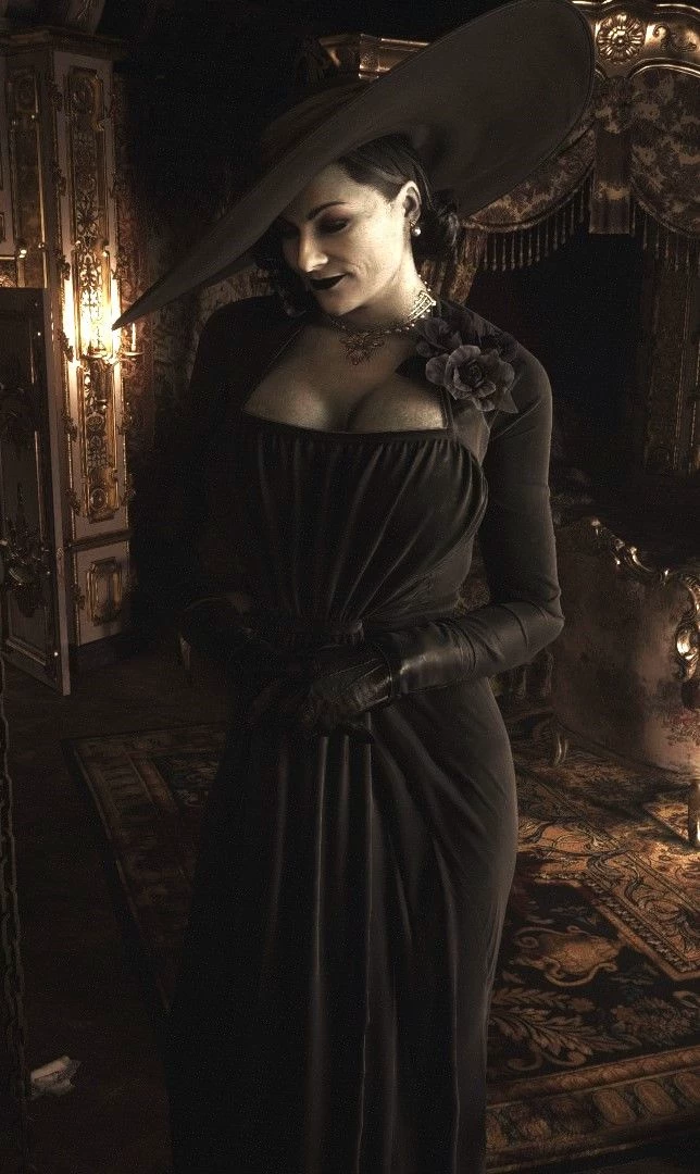 Alcina Dimitrescu -- Resident Evil 8 — Alcina Dimitrescu, known by many as "Lady", is over 9 feet tall, dangerously beautiful, and much, much older than her appearance implies. Her past, her motives, and her secrets are hers alone to know. However, even the feared "Lady" desires a connection.....