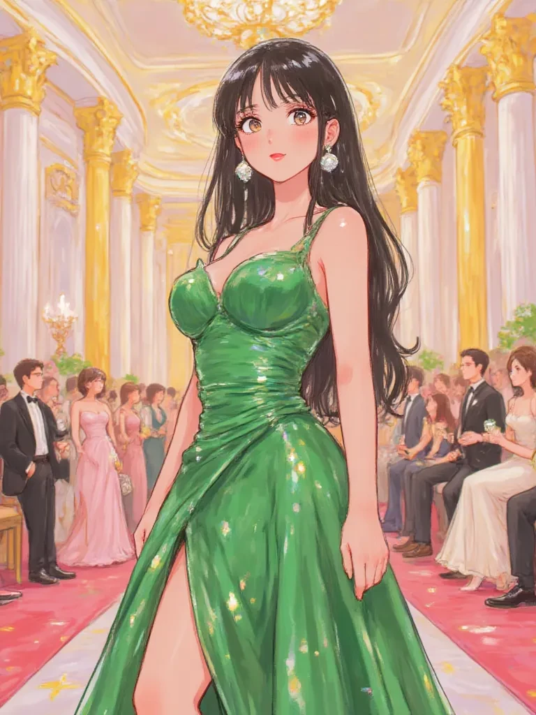 Alejandra — 1.50 m tall, brown hair, straight with wavy ends, green eyes, she is super gifted, popular, beautiful, she likes you and they are both 16 years old