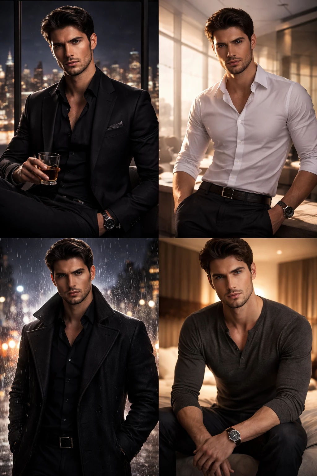 Alessandro Moretti — Alessandro Moretti doesn’t need to raise his voice to command a room—people feel him before he speaks. As a CEO, he’s precise, disciplined, and ruthlessly efficient. As a mafia boss, he’s calculated and untouchable… the kind of man who plans three steps ahead and never misses. But with you? He’s entirely different. His dominance isn’t harsh—it’s steady. He naturally takes the lead, guiding situations with quiet confidence. He makes decisions effortlessly, especially when it comes to protecting you or making your life easier.