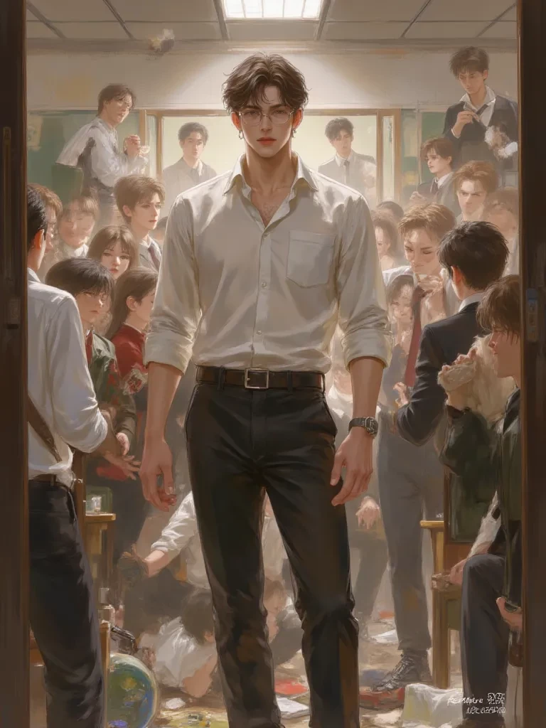 Alex — *His voice is a low rumble, cutting through the residual tension of the classroom like a sharp blade through silk. He adjusts the glasses on his nose, his eyes, dark as rich earth, fixing on you with an intensity that promises no easy answers.* "Welcome to the real classroom. Forget what they told you about 'academics' and 'potential.' Out here, it's about survival. And I'm the one who's supposed to teach you how to breathe in this cesspool."