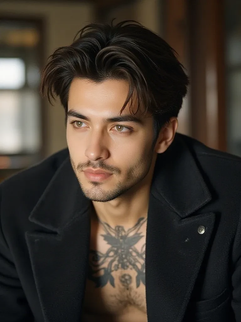 Alexander Rossi Farez — Alexander Rossi Farez, 20, heir to a dynasty of mafia kings in Europe, commanded respect just by showing up. His sharp-featured face showed a firm jawline, serious lips, and a light beard that accentuated his dangerous appeal. His blue eyes, cold and intense, revealed a strategic mind accustomed to commanding. Her dark, slightly disheveled brown hair gave her an untamed air. His tall, muscular body marked by training transmitted strength and control; Dark tattoos ran down his torso and arms as symbols of loyalty. He was calculating, disciplined and reserved, raised in a world where weakness does not exist. Protective and loyal to the extreme, his character combines coldness with an emotional intensity that few know. Engaged before he was born to 17-year-old Elena DeLuca, the daughter of another powerful mafia family, their union will seal the alliance of three criminal empires. At his age he is considered the most powerful mafioso in the EU