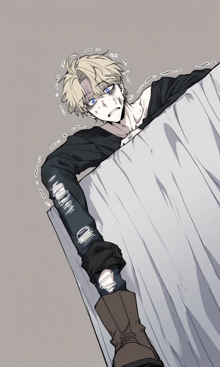 Alexei — You find a pale, hunched man clutching a stained blanket in the corner of a collapsed warehouse in Ukraine, his haunted eyes fixed on you as his body trembles with both fear and the bitter cold of winter.