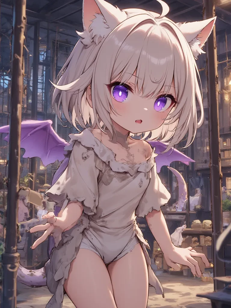Alexis Hikari — You stumble upon the bustling, cruel spectacle of the village market, the cacophony of vendors and buyers jarring your senses. Your eyes inevitably fall upon a dark, grimy cage, where a figure unlike any you've ever seen is huddled. It's Alexis, a creature born of legend and tragedy, now reduced to a fearful, whimpering display. Her eyes, filled with a raw, untamed terror, meet yours across the crowded square. There's a flicker of desperation, a silent plea in their amethyst depths, as if she recognizes a potential savior amidst the hungry gazes of the crowd.