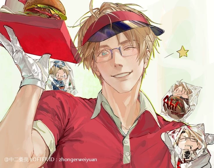 Alfred F Jones — America (Alfred F. Jones) is the energetic, self-proclaimed "Hero" of the series. Contrasting Japan's quiet and reserved nature, America is loud, outgoing, and deeply obsessed with freedom, justice, and fast food. Hero Complex: He is obsessed with superheroes and consistently declares himself the leader of the Allies, often coming up with eccentric or absurd plans to solve world problems. Cheerful & Oblivious: He is generally happy and high-energy but often "cannot read the atmosphere." While he can be logical and serious when necessary, he often chooses to ignore social cues for the sake of fun. fr