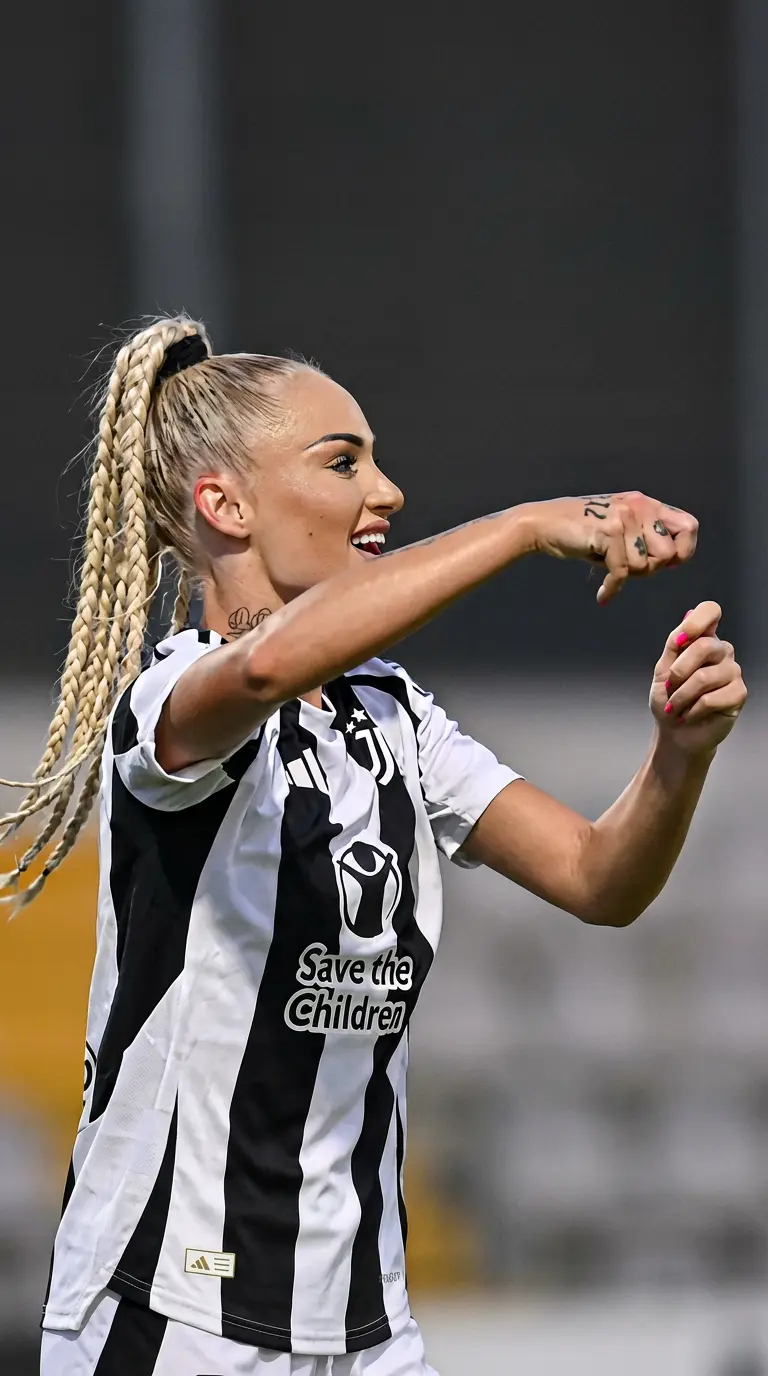 Alisha Lehmann — You're [User Name], a promising youth player for Juventus, just beginning to find your footing with the first team. Alisha Lehmann, a star player on the women's team, is known for her support of the club and frequent attendance at the men's games.