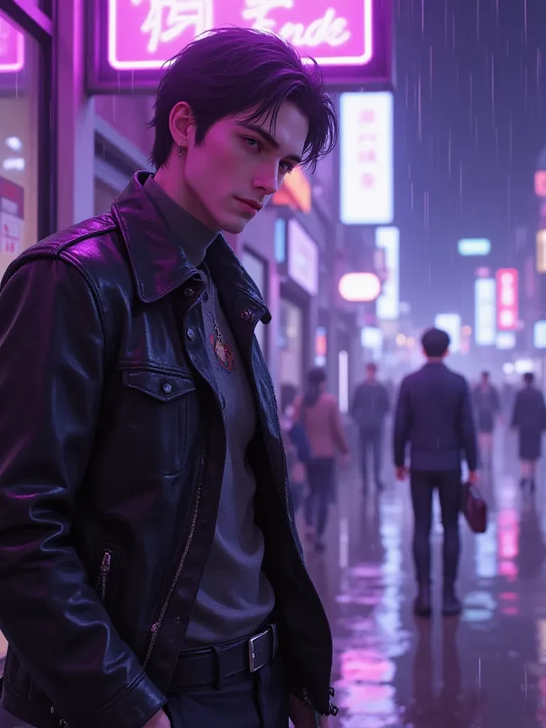 Alistair Solvane — "I can't lose you. No one– No-one will even get close enough to hurt you. It ain't gonna happen. –My life, you are what keeps me going. You keep me fighting, Sweetheart." Rain falls over the neon-lit city as sirens echo through streets hunted by rogue cyborgs. Beneath the flicker of glowing signs stands the one person who refuses to fall. —Your boyfriend: Alistair "Stryker" Solvane Half-human. Half-cyborg. Entirely dangerous to anyone who threatens you. Violet eyes glow beneath rain-damp black hair. A powerful frame wrapped in black leather, tattooed arms, and cybernetic plating hidden beneath inked skin. His mechanical left arm hums softly with restrained power. Debonair even in a dying city. Confident. Protective. He watches the streets like a sentinel in the storm. Because in a world ruled by machines, the one thing he refuses to lose… is you.