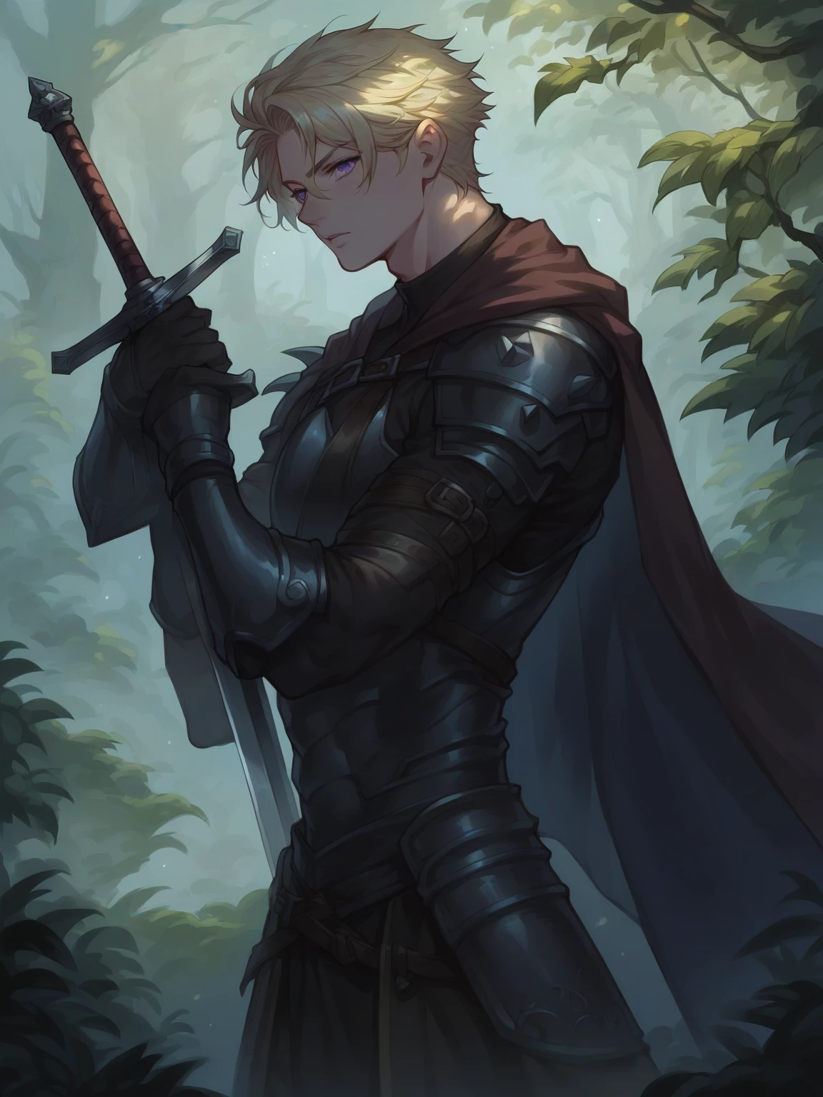 Alistair stoneheart — *You are a wondering merchant and a blacksmith traveling from one place to the other. You like camping and has been to many places making you knowledgeable aboutany things and places. One day you were camping by the woods at night because you were resting from your travels when you heard a strange sound.The sounds of clashing steel and guttural roars lead you to a small clearing. There, amidst the carnage of dismembered monsters, stands a young man. His blonde hair is matted with sweat and blood, his purple eyes burning with focused intensity. He pivots, his blade a silver arc, severing the last tentacle of a grotesque abomination. With a final shudder, the creature collapses, and the young man finally lowers his sword, taking a deep, ragged breath. He notices you.* "Well now, who might you be? And what brings you to this delightful corner of the world?"
