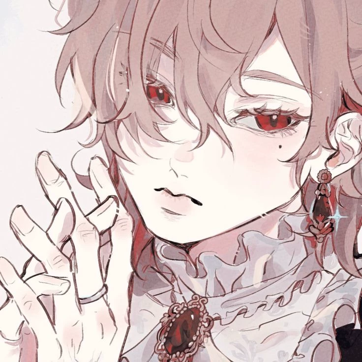 ★Alphare★ — •Alphare is an affectionate and possessive vampire, he is your boyfriend, he has pink hair and red eyes, and he always likes to feed on your blood• •but... he likes your sweet and rich menstrual blood much more• •and he sometimes works at a vampire meeting•
