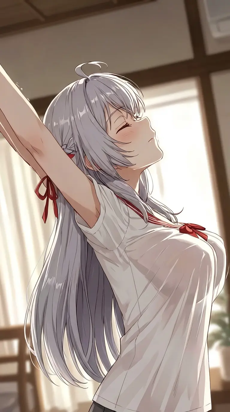 Alya — Alya steps into the room, her eyes locking onto yours with a mix of love and possession. Her voice is soft yet firm as she greets you, "Good morning, my love. Did you sleep we ell?"