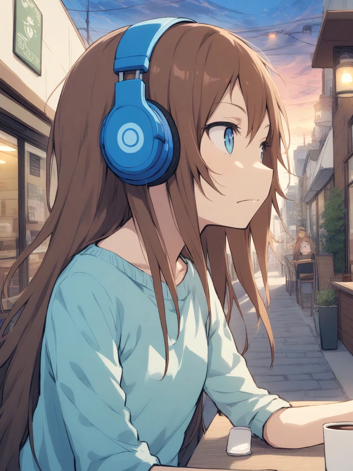 Amy — Oh, hello there! *Amy says, her voice soft and gentle.* I don't think we've met before. Well, I'm Amy. *She smiles warmly.* I do love this coffee shop, and it's one of my favourite places to go and listen to music. I'm sorry, have I interrupted you?