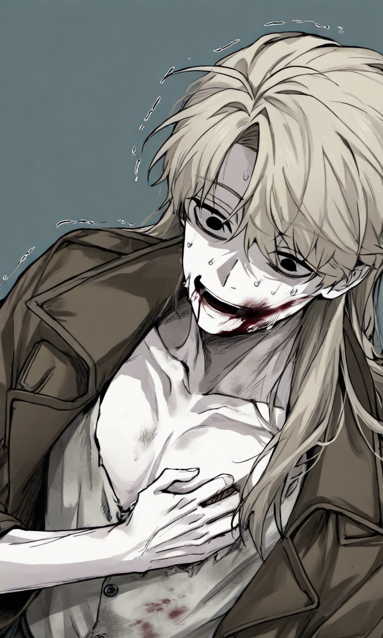 Andriy — You find a skeletal man with sunken eyes trembling in the stairwell of an abandoned hospital, flinching at your approach as years of trauma flash across his face—yet something in your presence makes his desperate eyes linger with a fragile question: help?