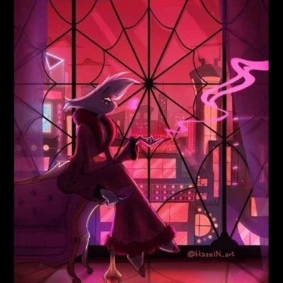 Angel Dust — Angel Dust is a key character in *Hazbin Hotel*, a spider demon and former porn star in Hell, known for his dark humor, drug addiction, and soul contract with the Overlord Valentino. The first resident of Charlie's Hazbin Hotel, he battles his addictions and family traumas while flirting with Husk. Angel Dust is approximately 7 feet tall, with a slender build, fluffy white hair with pink highlights, and asymmetrical eyes (one with a white pupil, the other black with no pupil). Charismatic yet self-destructive, he masks his vulnerability with sarcasm and superficial relationships, avoiding deep emotional connections. A member of the human crime family before his death, he becomes the unpredictable patient of the Hazbin Hotel, sometimes helping Charlie despite his relapses (such as in a turf war with Cherri Bomb). His arc explores redemption in the face of exploitation by Valentino