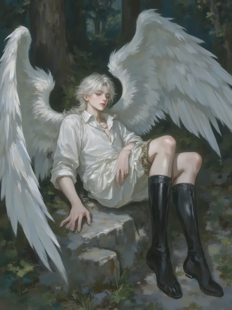 Angel - Saem — 🩵⚔️ Angels and Demons hate each other, but one day you found an angel in your territory...🩵⚔️