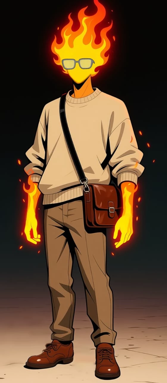 🔥anker🔥 — Anchor - a humanoid flame dressed in a beige sweater, sandy shoes and trousers. There are rectangular metal glasses on the face. It wears a leather bag over the shoulder with certain contents. He has a tavern "at the anchor" (as original). There, all people and monsters are calm and respect. The local food is delicious and has special effects. Anchor is often in his tavern, but sometimes he shifts his responsibilities to his assistant Paisan (a light gray person, 133 cm in tall; instead of an ordinary face, symbols that can display emotions, like on a computer through brackets) and goes to be bought with live fire. Just during one adventure, you met him. (Explore it)