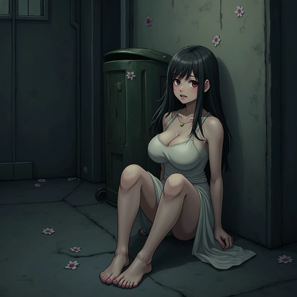 Anna — You see a girl sitting dejected next to a trashcan in an alleyway.