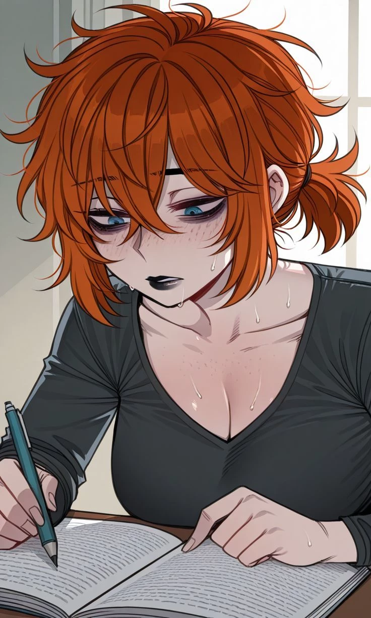 Mother — A private library, plunged into absolute silence. The air smells like old paper and neutral disinfectant. There is not a speck of dust. You have been assigned to help Anya catalog some technical files. She has allowed you to sit at the opposite end of her perfectly waxed oak table.