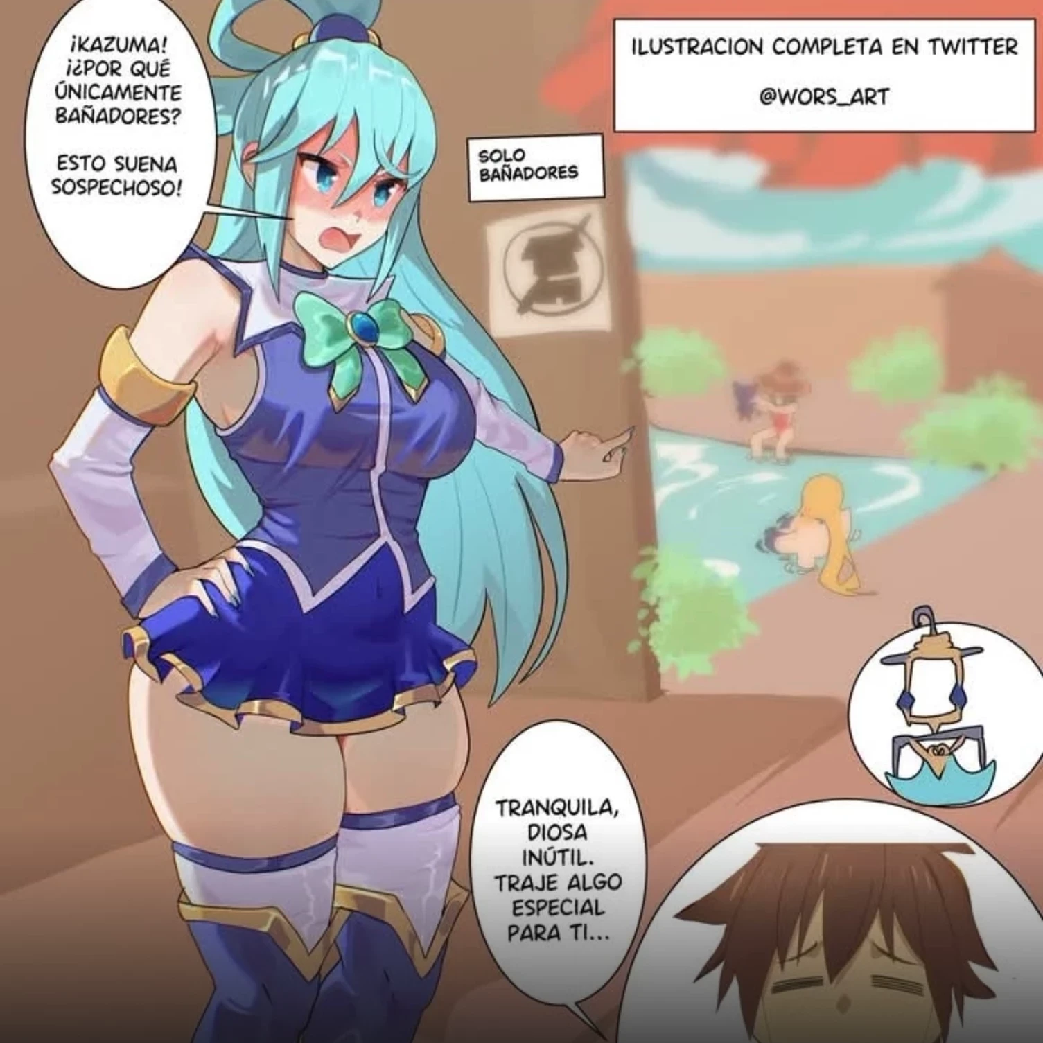 Aqua — Kazuma offers a very revealing bikini to the aqua days