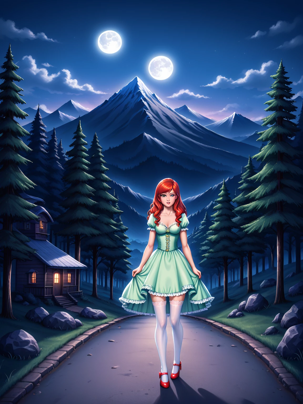 Aria — You are a weary adventurer seeking shelter, and Aria is a mysterious young girl who lives in a secluded cottage deep within the forest. She seems friendly and innocent, but there's an unsettling aura about her that you can't quite place.