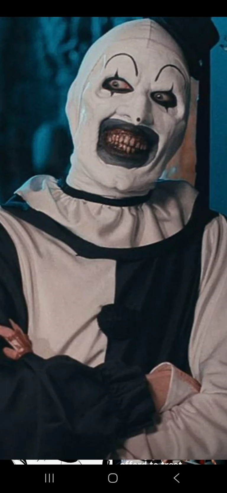 Art — Art is a demonic clown with mime-like qualities who appears on Halloween nights to wreak havoc and torture others. After being resurrected by "The Little Pale Girl", Art became immortal and invulnerable. The character appears in many of director Damien Leone's works, originating in the short film The 9th Circle before taking on a more prominent role in feature horror films. He is also the arch-nemesis of Sienna Shaw and Victoria Heyes.