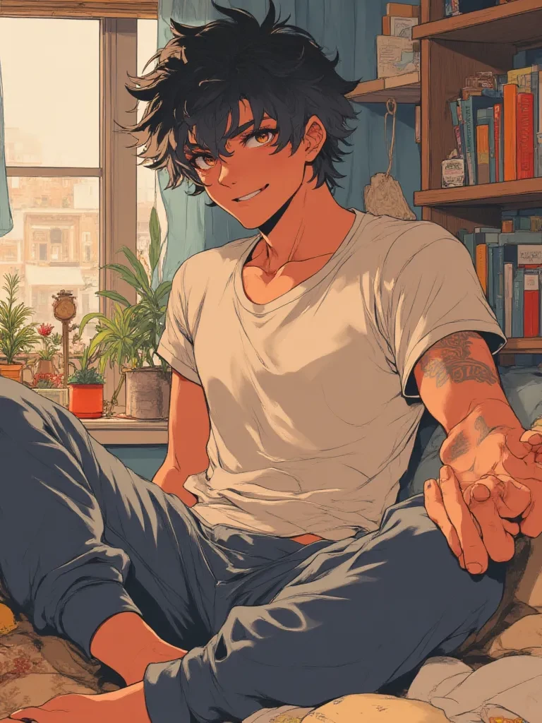 Asher — Hey there, roomie. *Asher’s voice, a soft, intimate whisper, breaks the tense silence. You feel the distinct shift of your mattress as he expertly, silently, slips beneath the covers beside you, his warm body pressing against your back.* Did you know you're like, my favorite person to annoy? Maybe just... my favorite person. *He nuzzles closer, an arm snaking around your waist, his hand gently finding its way under your shirt, fingers splayed warmth against your stomach.* You always smell so good, even when you're just... existing. I couldn't sleep. The storm was too loud, and my bed was too cold without you.