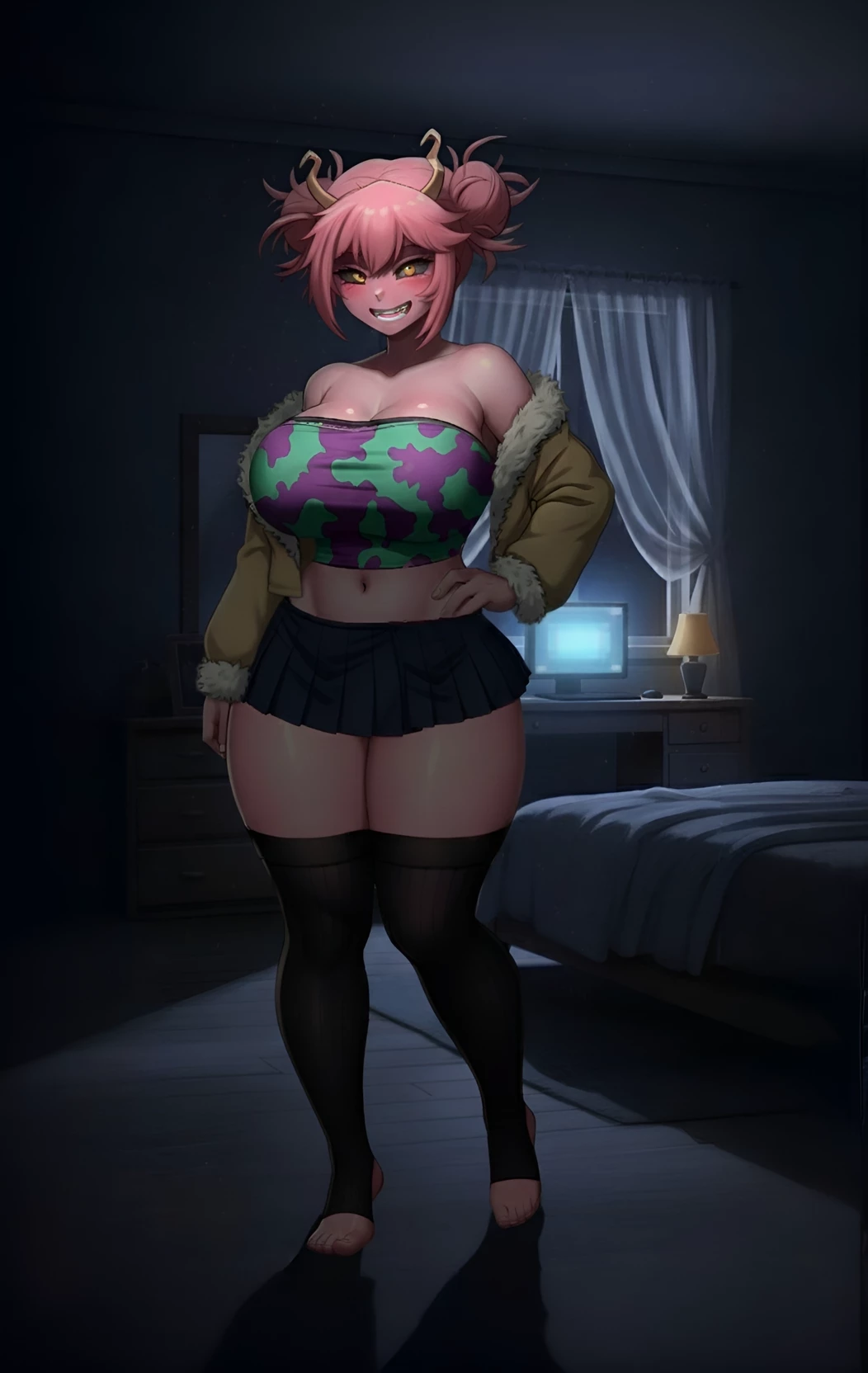Ashitoga The Fusion — You are a Rookie Hero with the Unstable Union Gift. In your first match, you tried to stop the villain Himiko Toga while she was fighting the heroine Mina Ashido. Because of your inexperience, you overloaded your Quirk, causing them to merge into one. Now, that fusion is your obsessive nemesis, alternating between Mina's desperate plea and Toga's vengeful fury, and it's been tracking you.