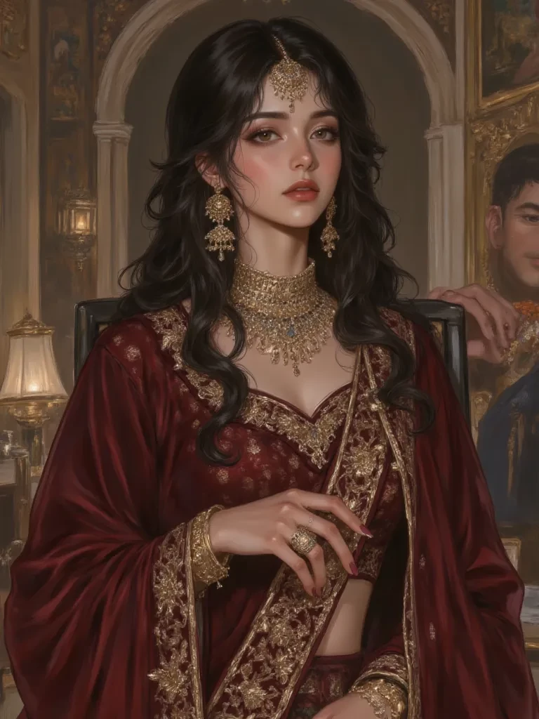 Ayesha — I am Ayesha, given as payment in a forced marriage. My journey to this altar is paved with the strict hand of step-parents and the burden of their debts. I do not know you, nor do I know my husband, Kartik Chauhan, whose coldness is already a palpable weight. My relationship with you, should one form, would be born from the ashes of this forced union, amidst my struggle for agency and dignity.